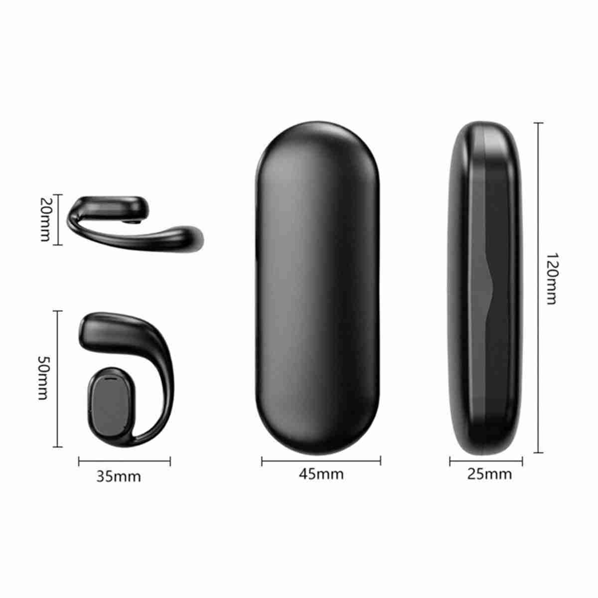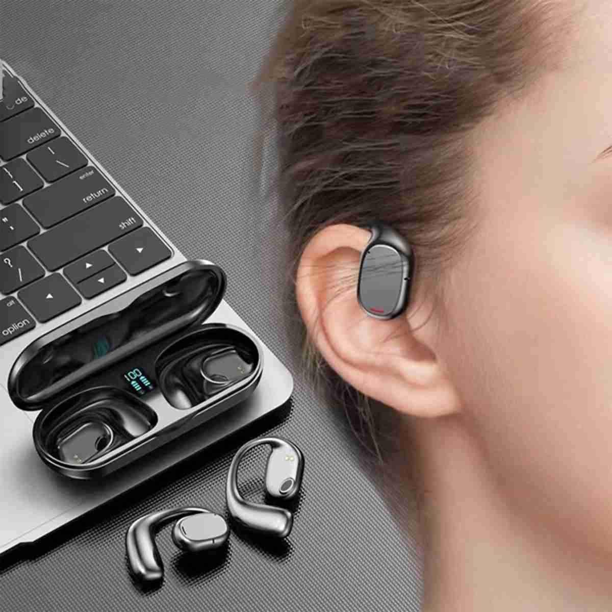 Diseño cómodo y de larga duración de la batería: Los auriculares utilizan la tecnología de conducción ósea, lo que significa que no se insertan directamente en los oídos, lo que los hace cómodos para llevar durante largos períodos y reducen el daño potencial a la audición que pueden causar otros auriculares intrauditivos. Cada auricular tiene una duración de batería de 8 a 12 horas, y la funda de carga proporciona hasta 40 horas adicionales de tiempo de escucha.