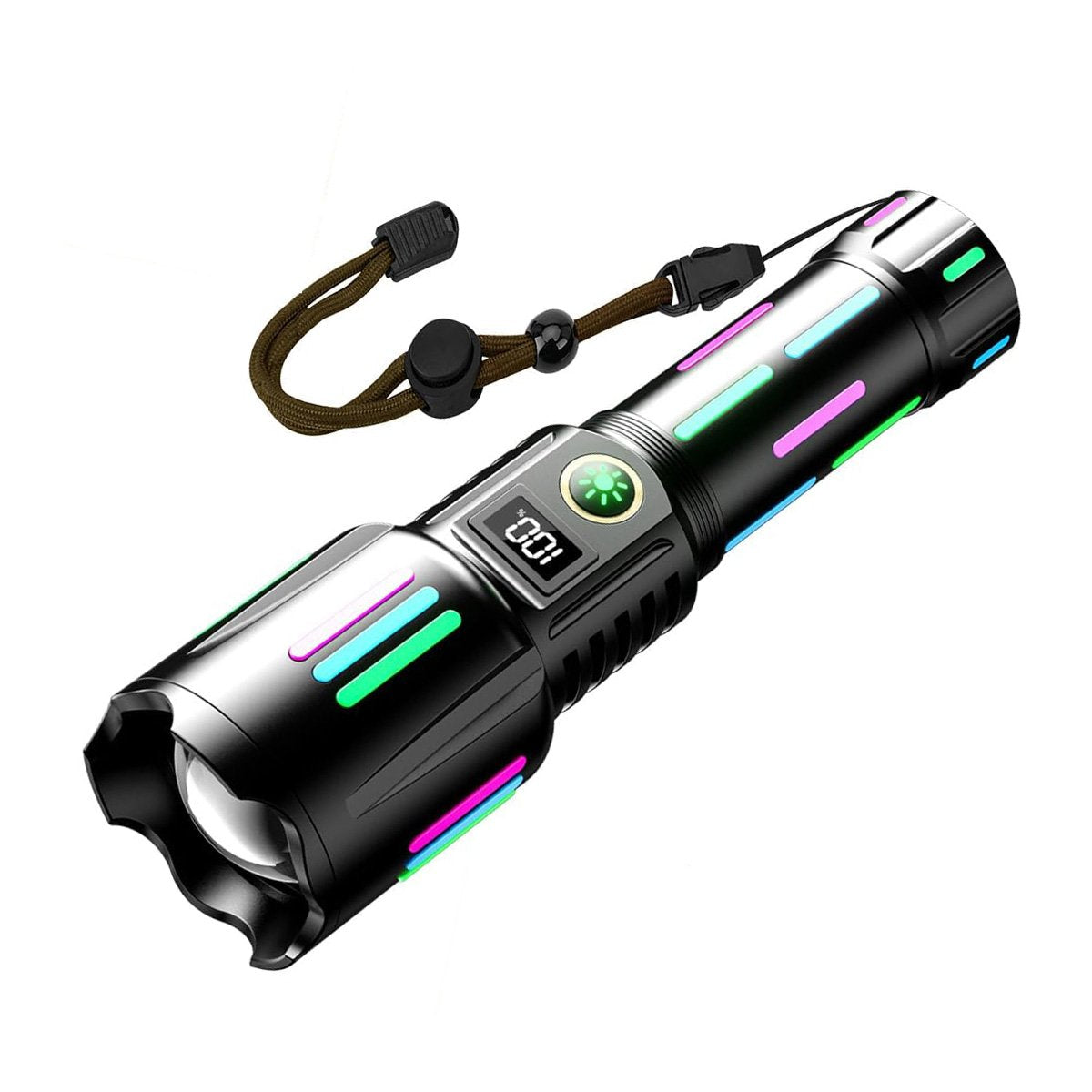 Descubre la linterna táctica recargable Almalux®, una herramienta imprescindible para tus aventuras al aire libre o emergencias en casa. Equipada con un potente chip LED de haz largo, esta linterna alcanza hasta 990.000 lúmenes, cinco veces más brillante que los faros de coche, ideal para iluminar grandes áreas en total oscuridad.