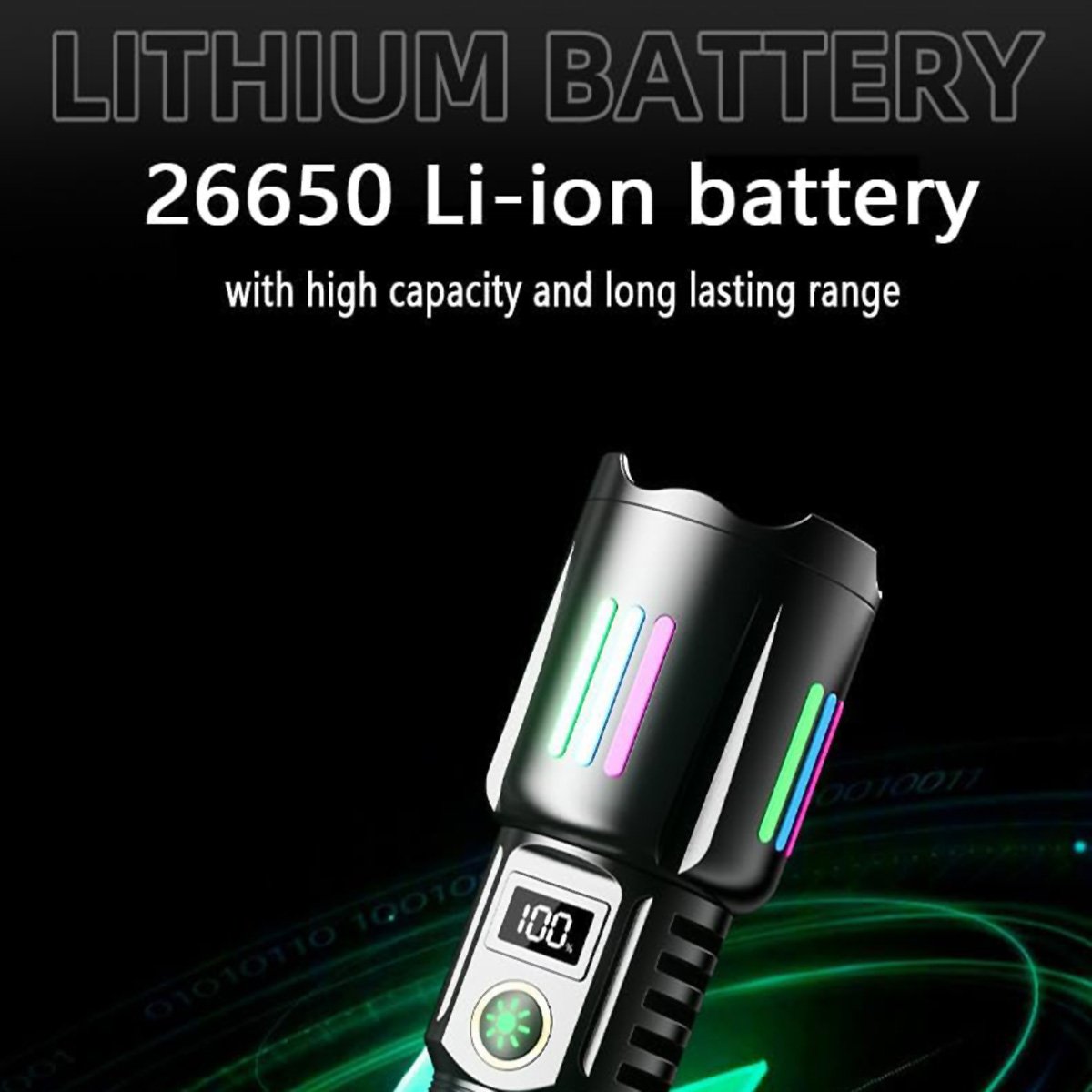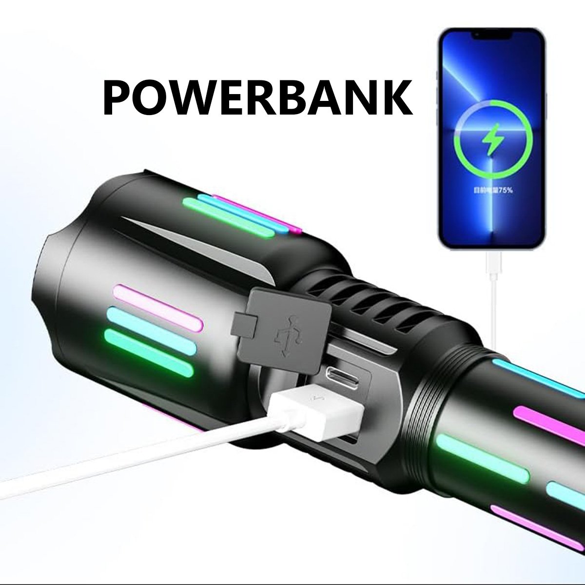 Linterna PowerBank Almalux® Recargable – Súper Brillante, Táctica, Impermeable, con Pantalla LCD y 5 Modos de Iluminación
