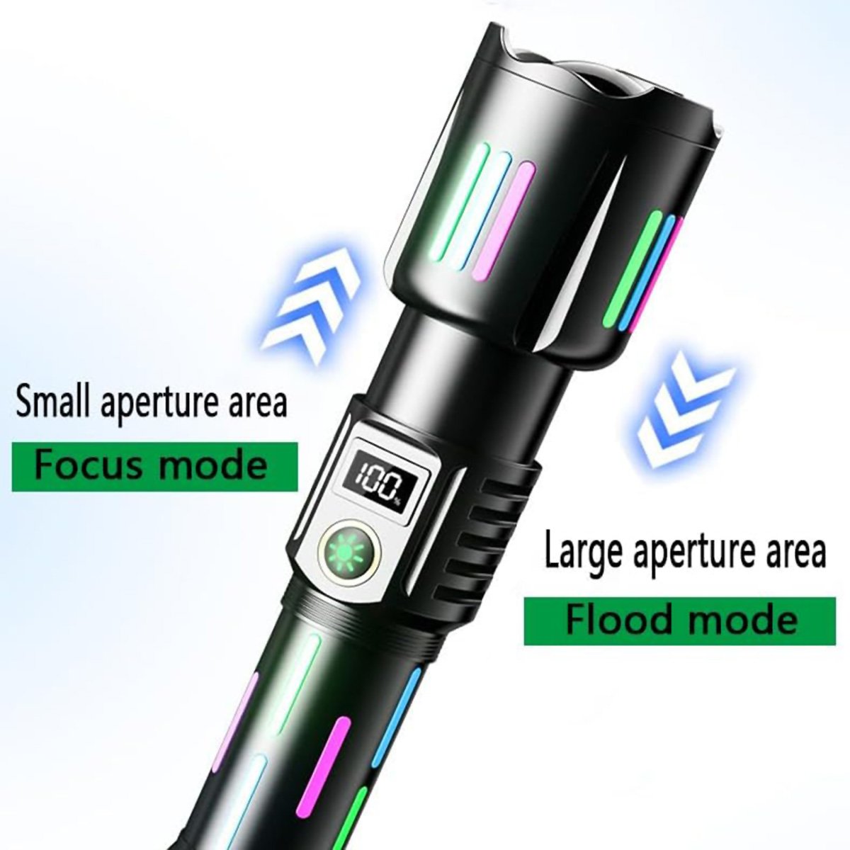 Con 5 modos de luz (alto, medio, bajo, estroboscópico y SOS) y zoom ajustable, adapta la iluminación según cada situación, desde caminatas nocturnas hasta emergencias. Su estructura de aleación de aluminio grado aeronáutico y certificación IP67 de impermeabilidad la hacen resistente al agua, a impactos y perfecta para cualquier clima.