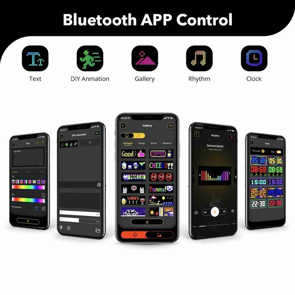 - Personalización Completa: Conéctate al panel LED a través de una aplicación móvil y diseña textos, patrones y animaciones según tus necesidades.