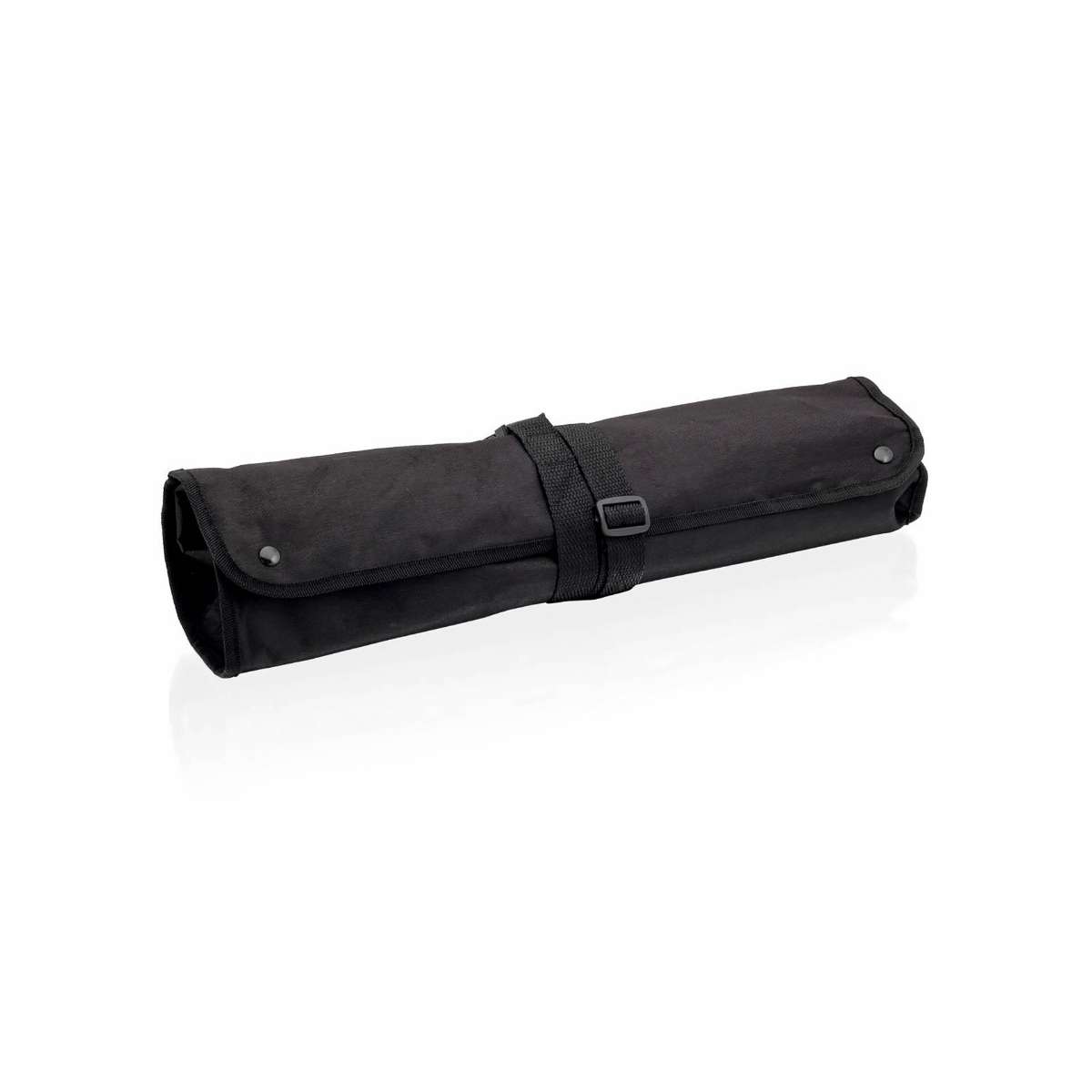 - Estuche Resistente: Fabricado en poliéster 600D en color negro, con cierre de botones metálicos para mayor durabilidad.